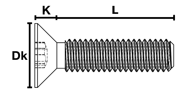 | Produkt | Závit | L | ⌀ hlavy DK | výška hlavy K | Klíč |