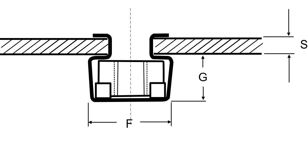 | Produkt | Závit M | Tloušťka S | A ±0,6 – 0,0 | B ±0,5 | C ±0,3 | D ±0,3 | E | F ±0,3 | G ±0,1 | P ±0,2 |