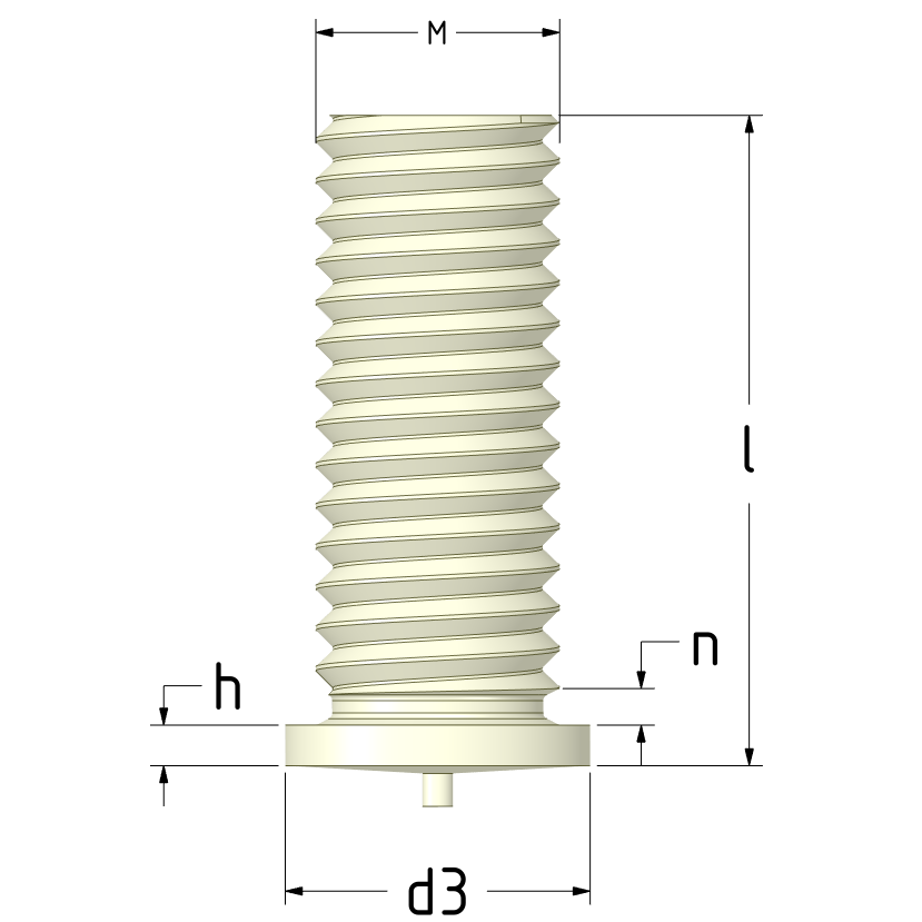 Domů » Navařovací prvky » Hrotové navařování materiál » Navařovací prvky Hliník » Přivařovací šroub s Anti painting závitem