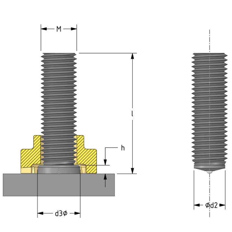 | Produkt | Závit M | l | d3 | h | Kroužek |