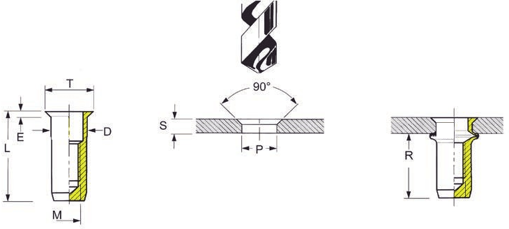 Nýtovací matice se zapuštěnou hlavou, uzavřená, hladký dřík, tvářená