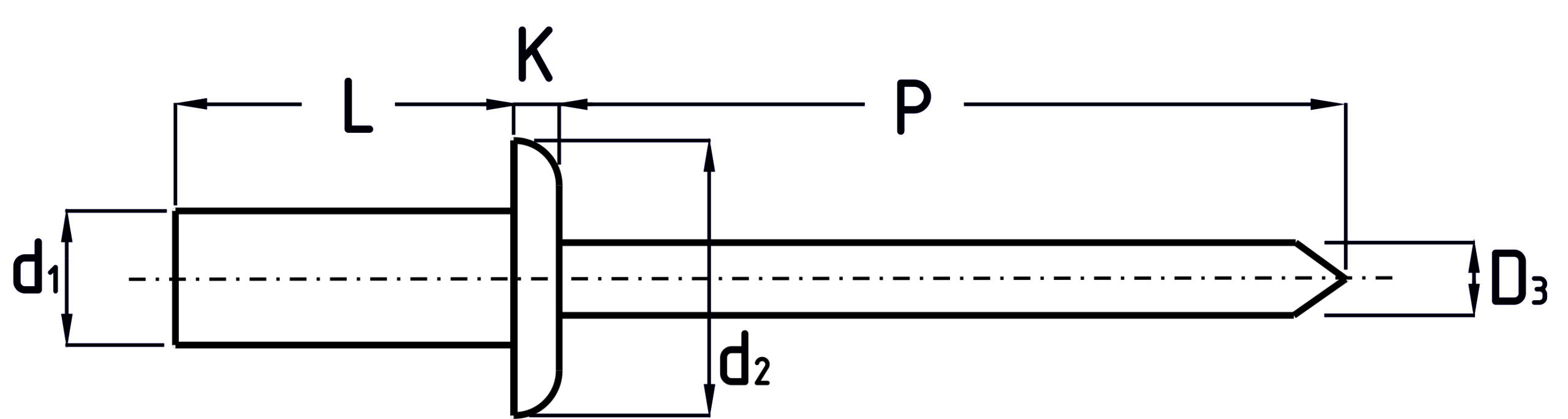 Trhací nýt uzavřený, s plochou hlavou