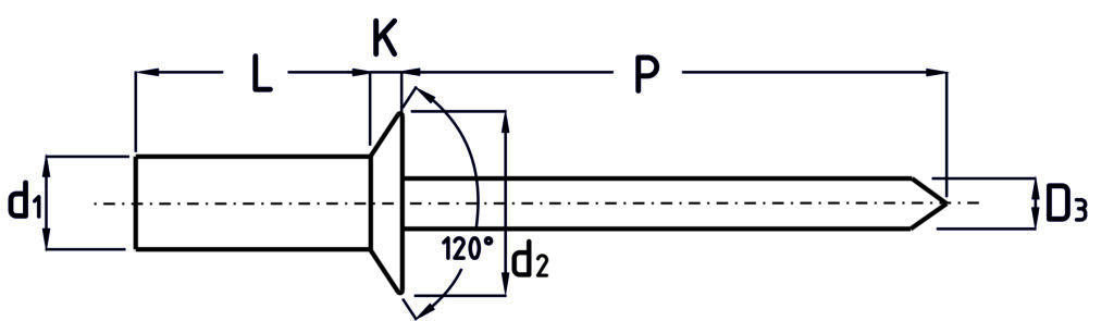 Trhací nýt Hliník / ocel se zapuštěnou hlavou, uzavřený