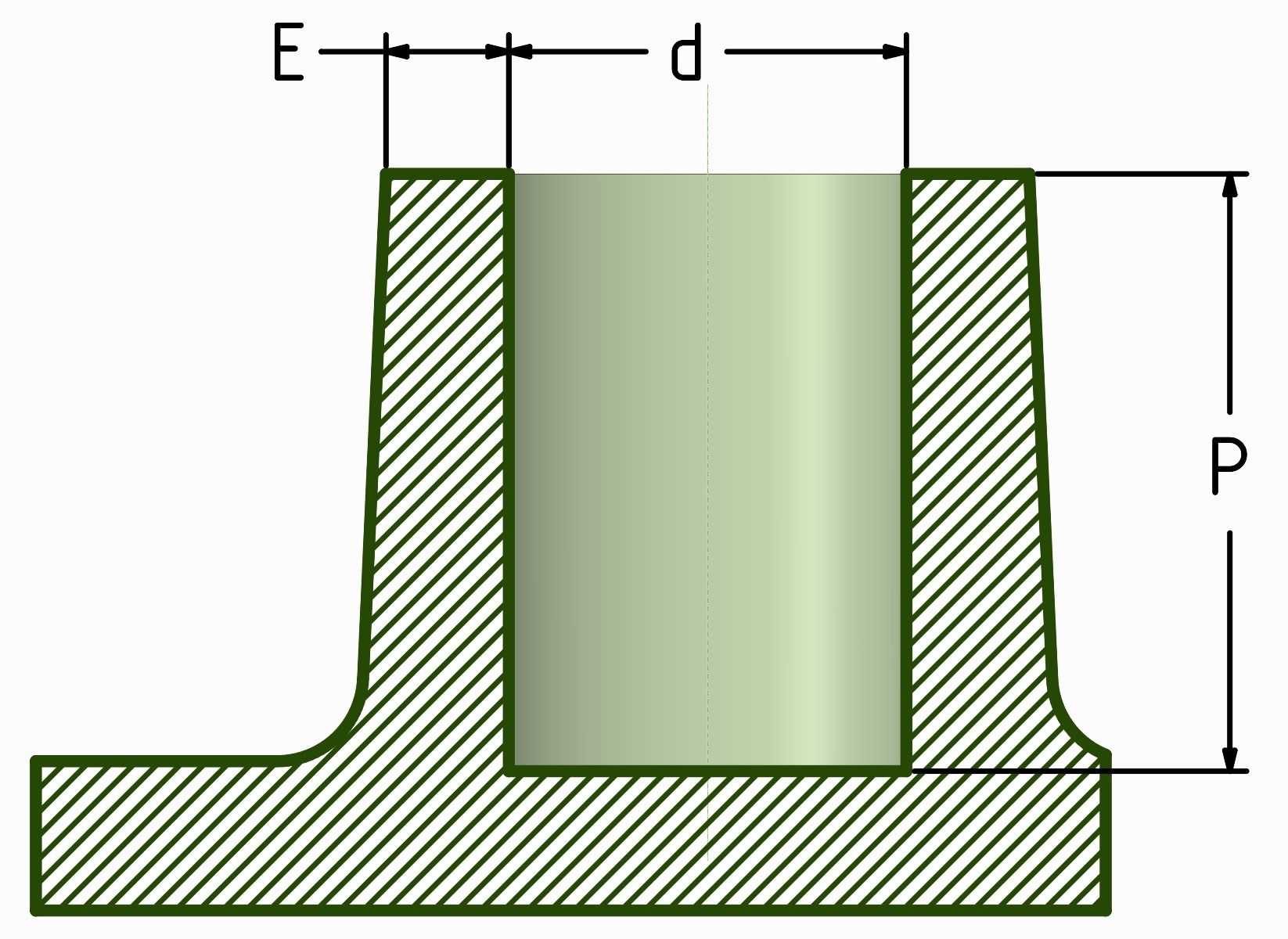Krok 1: Příprava otvoru a usazení zálisku – expanzní matice. V materiálu připravte (např. vyvrtejte) otvor dle doporučení v tabulce. Zálisek naváděcí částí (naříznutá část) vložte do otvoru. Pomocí kladívka a vhodného přípravku zasuňte (naklepněte) do požadované polohy v otvoru. Cílem je pouze zálisek zasunout do otvoru tak, aby její horní rovina byla v rovině s povrchem materiálu.
